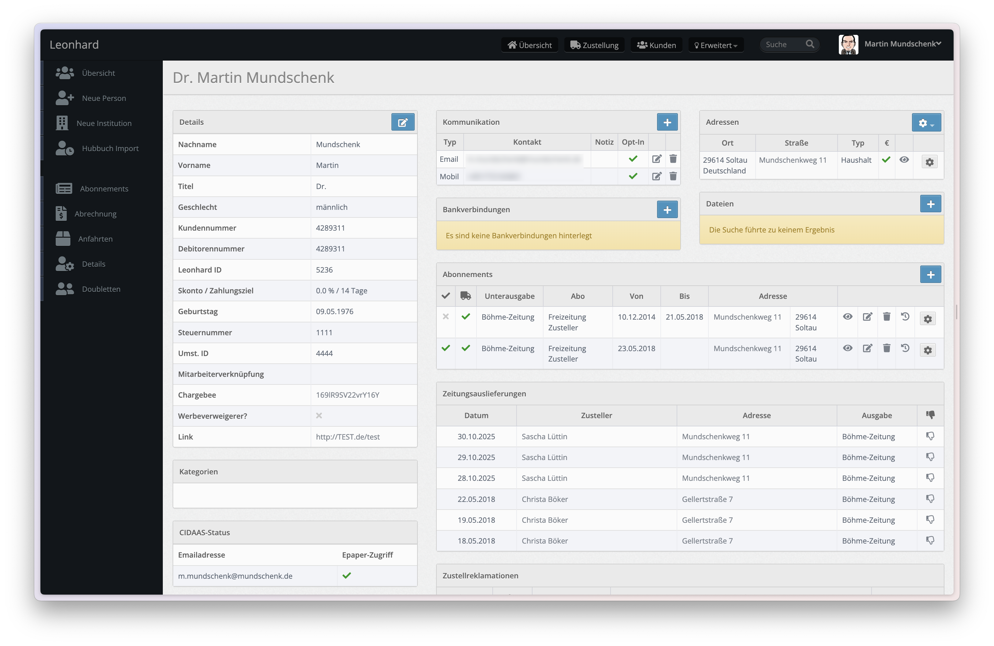 Kostenlose Abonnements werden oft für strategische Verteilung genutzt: Mitarbeiter-Abos, Multiplikatoren (Bürgermeister, Vereinsvorsitzende), Werbezwecke in Neubaugebieten oder Geschäftspartner. Diese Abos haben den Preis 0 Euro, werden aber logistisch identisch behandelt wie bezahlte Abonnements – inklusive Tourenplanung, Sollzeitberechnung und Reklamationserfassung.